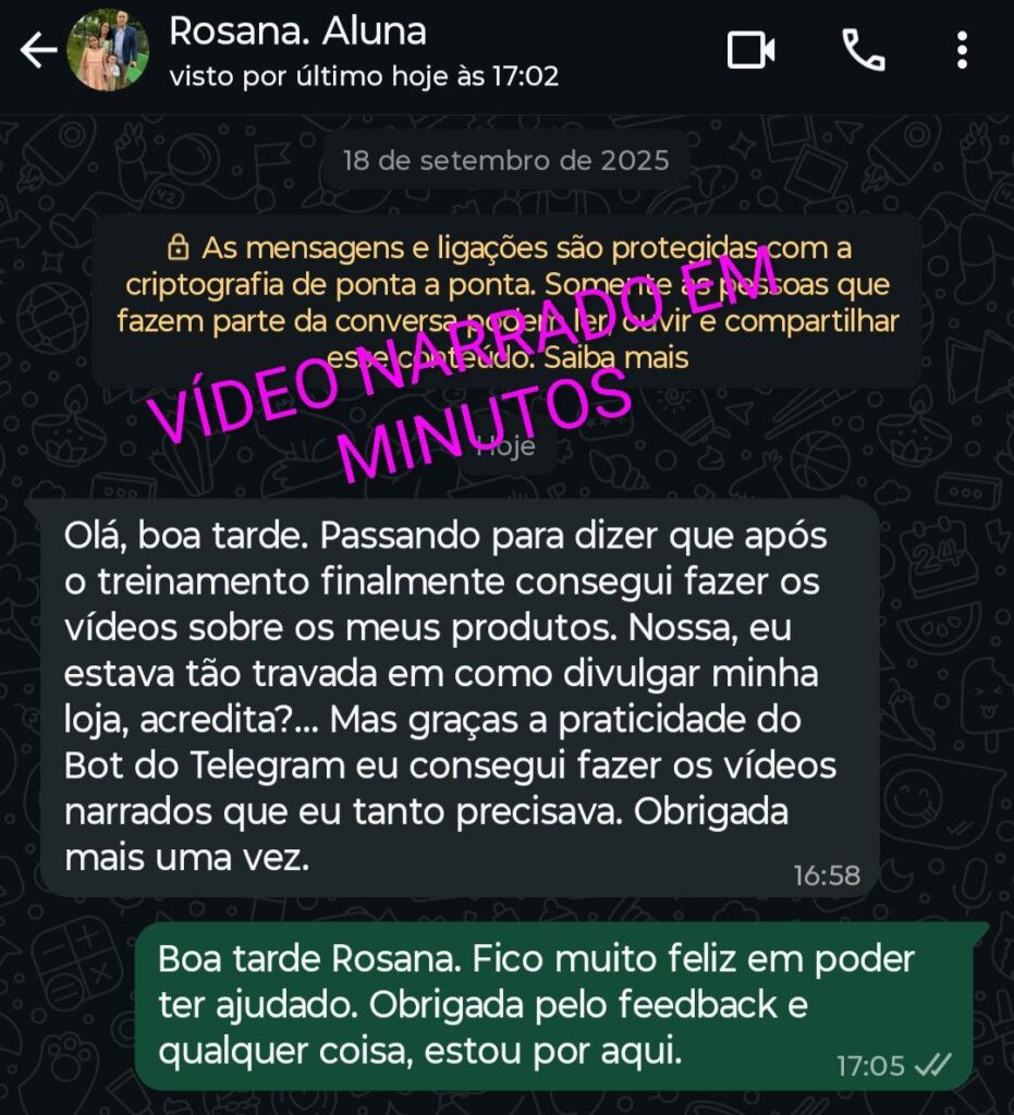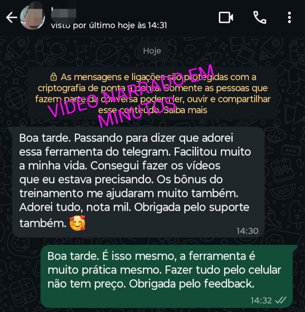 Treinamento Vídeo Narrado em Minutos (com acesso ao Bot do Telegram).